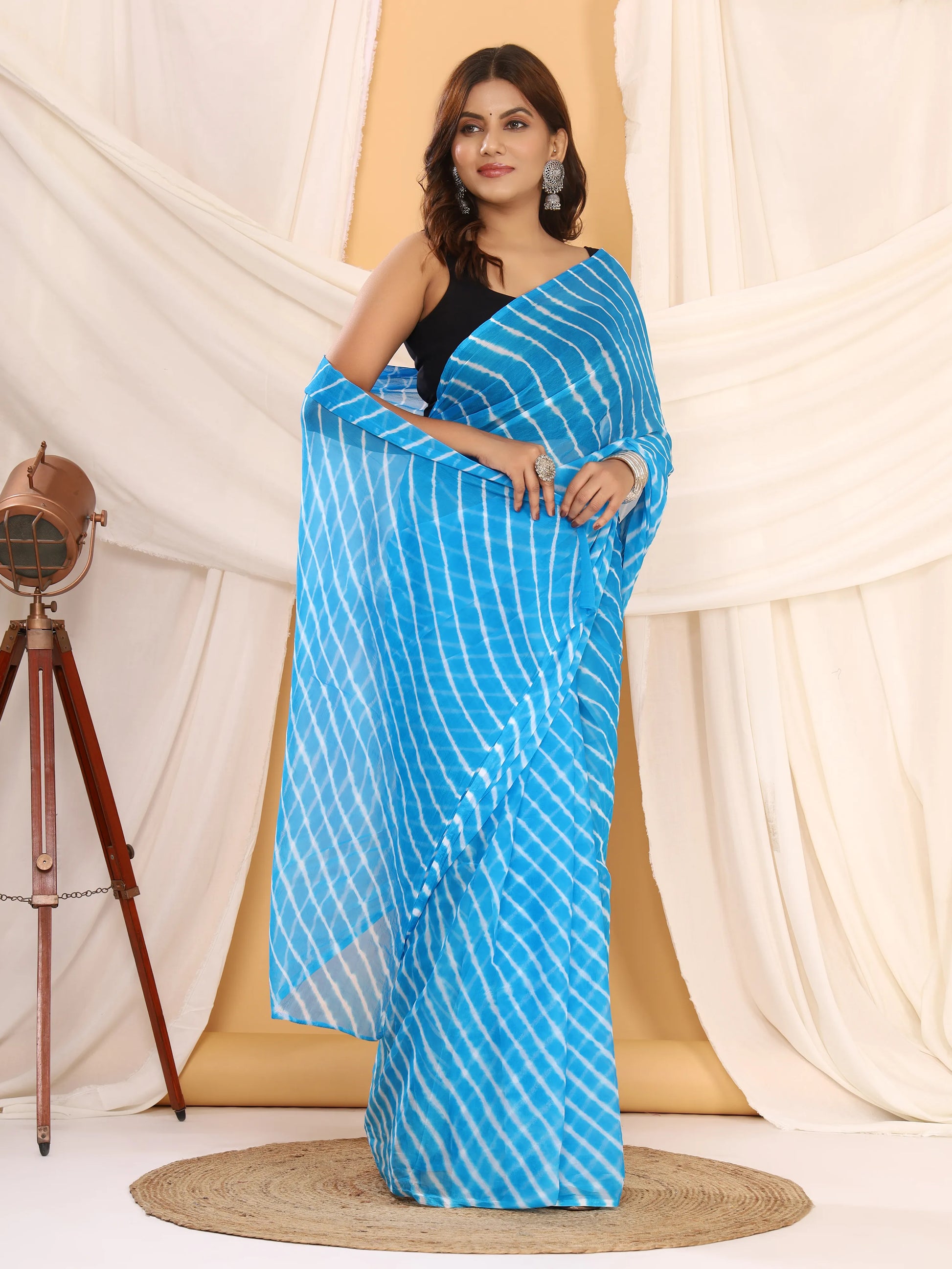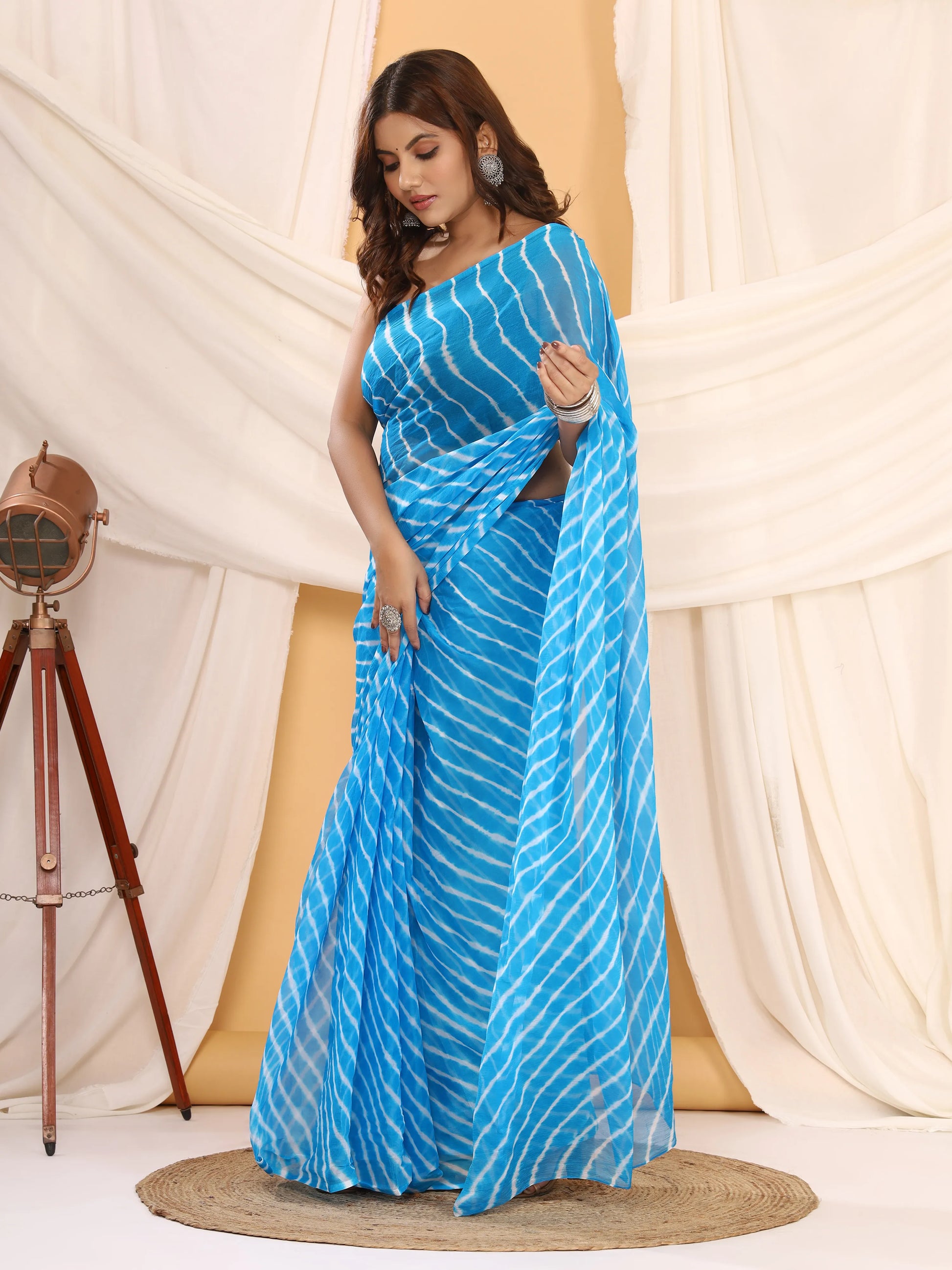 Sky Blue Nazmin Chiffon Saree with Hand Tied Leheriya
