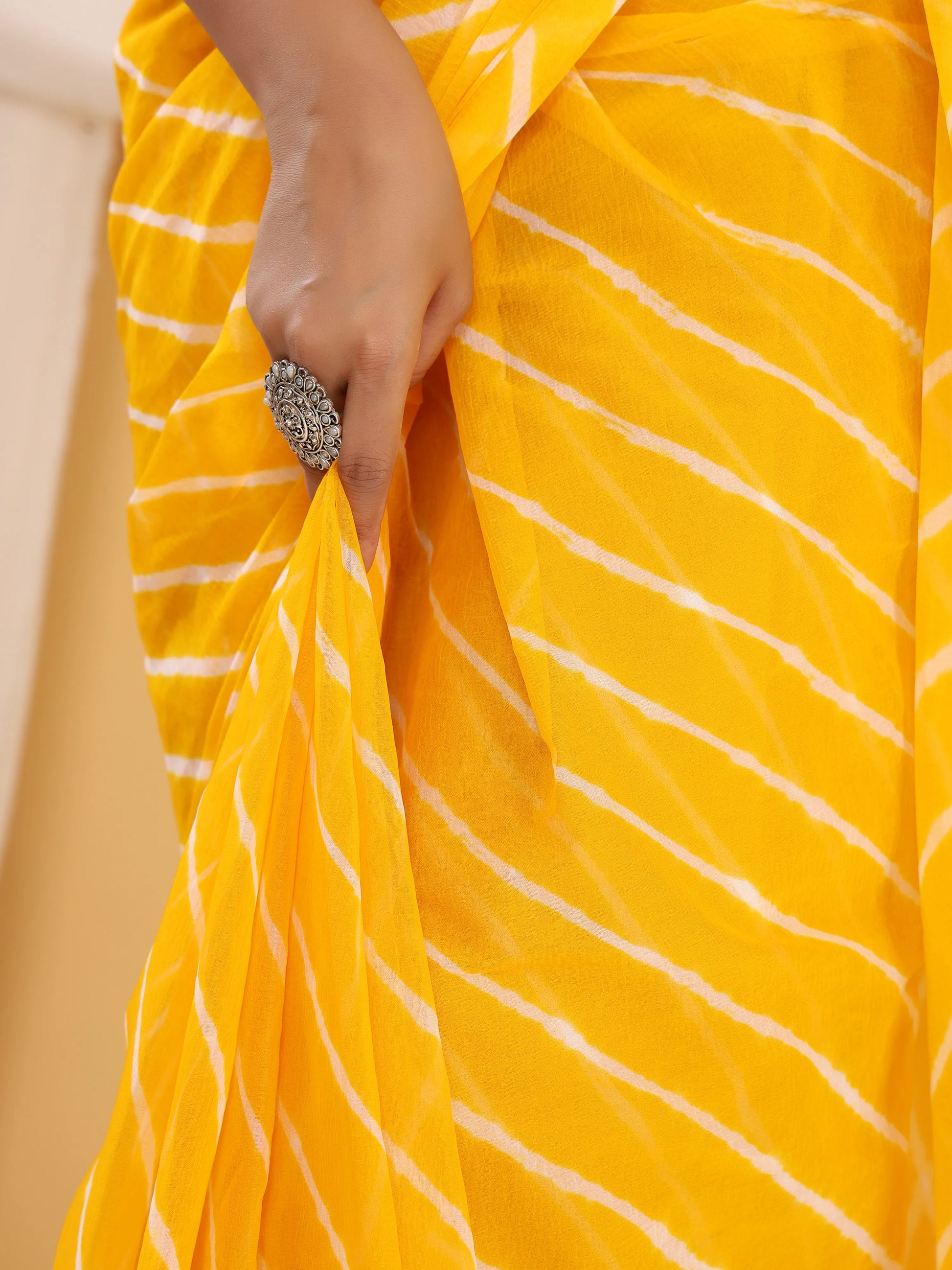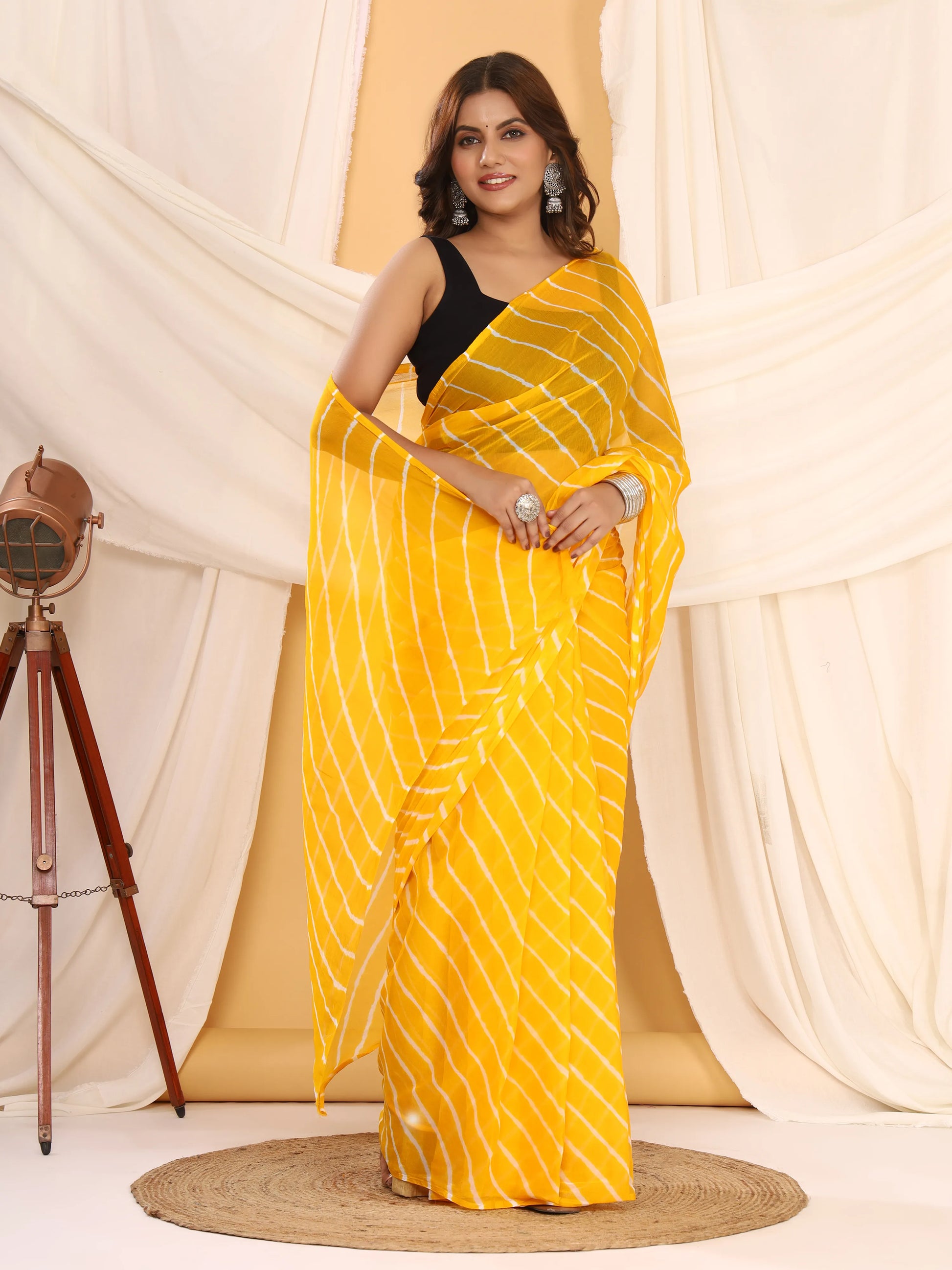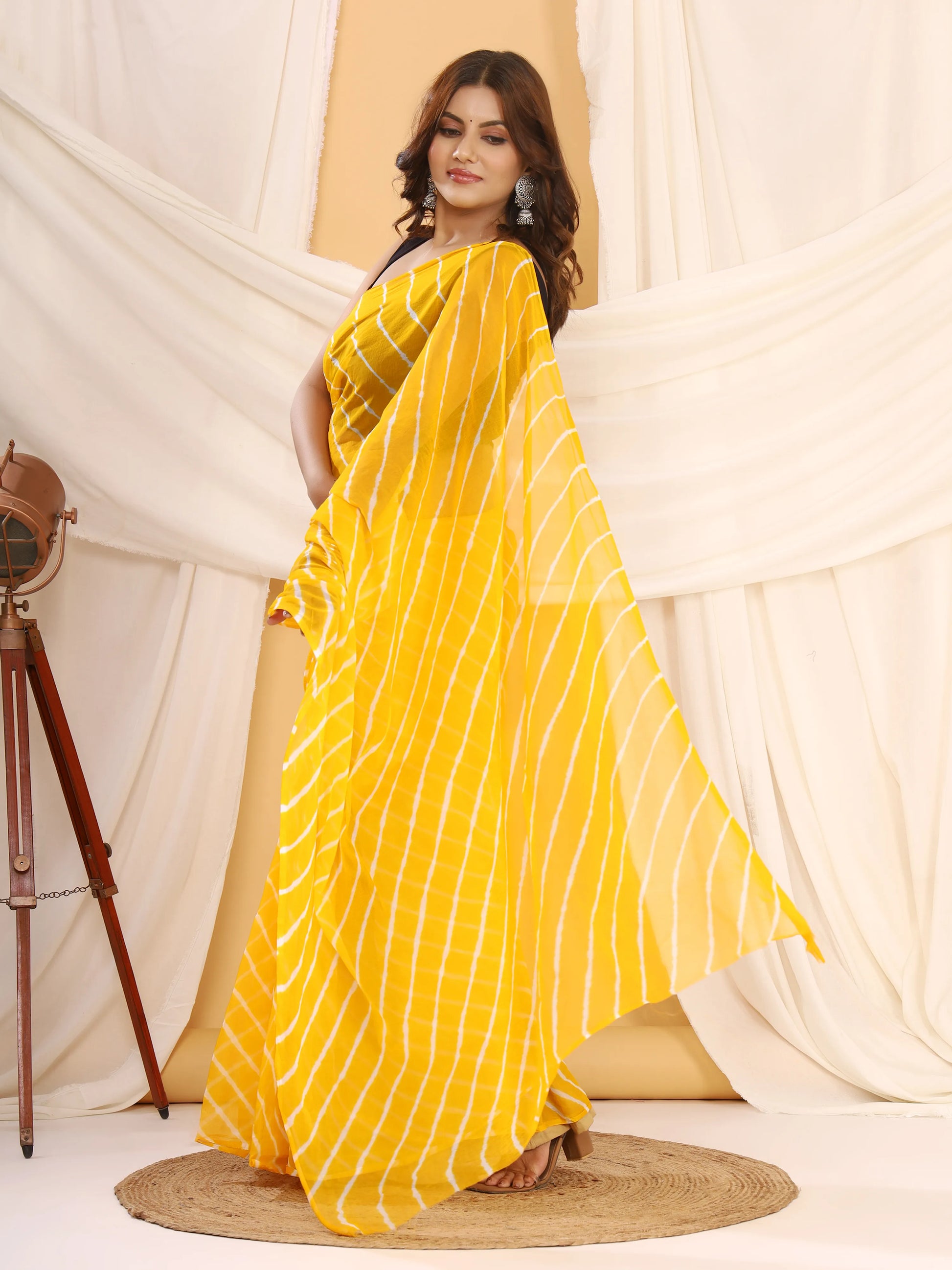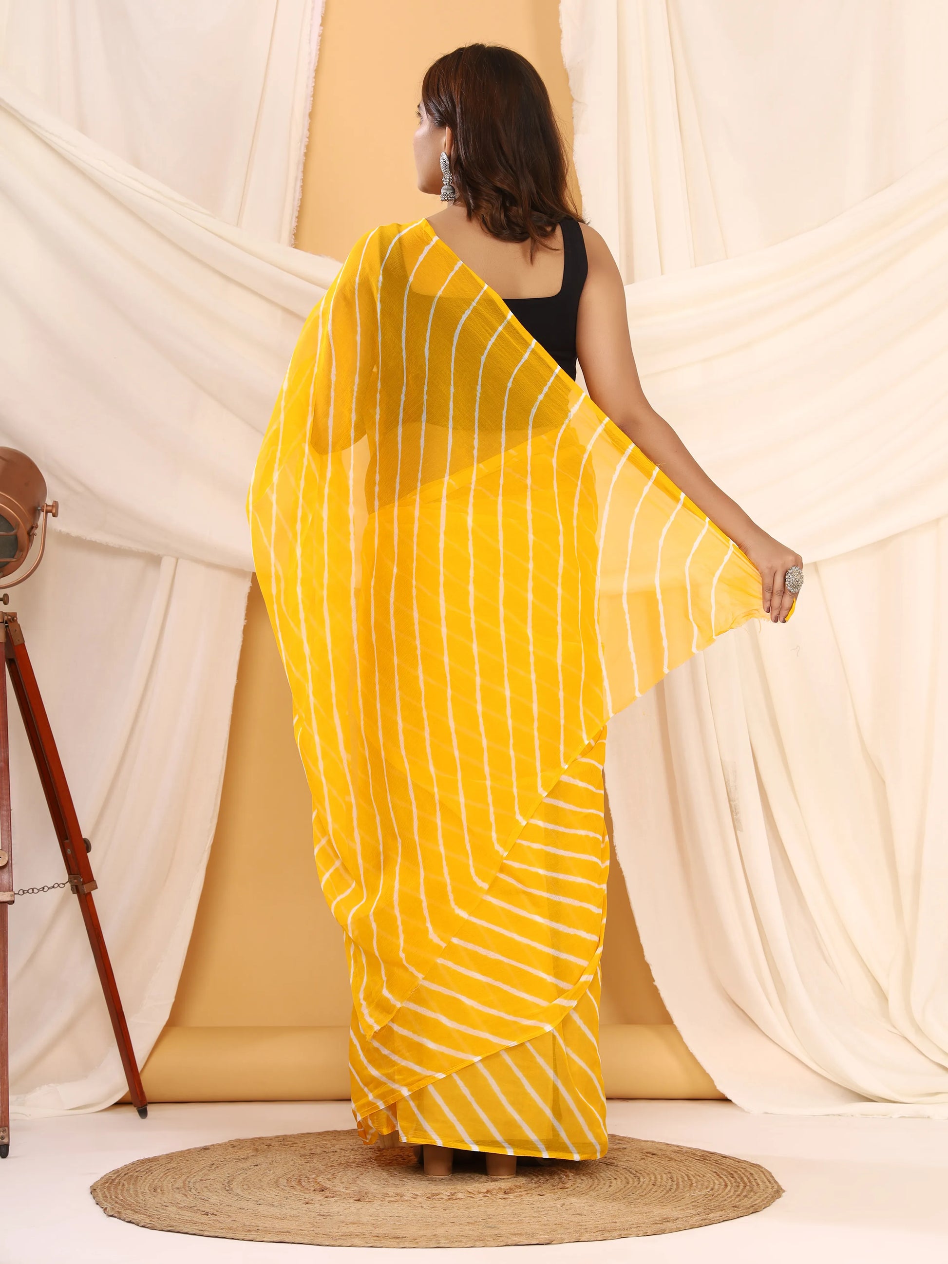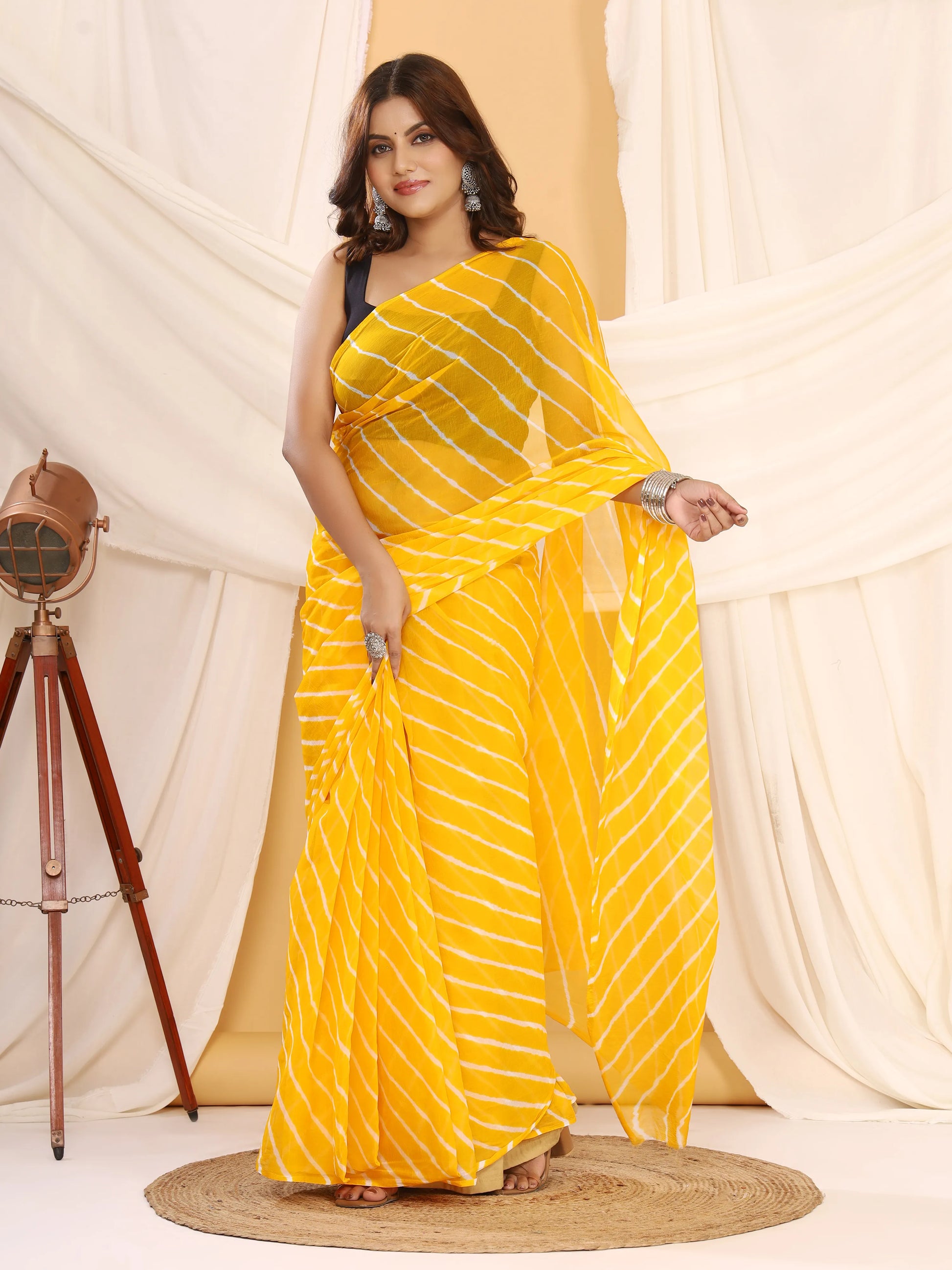 Turmeric Yellow Nazmin Chiffon Saree with Hand Tied Leheriya