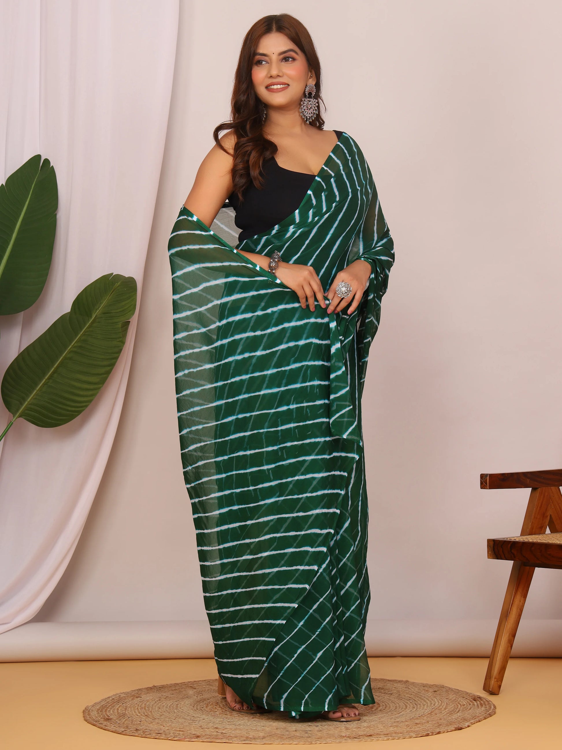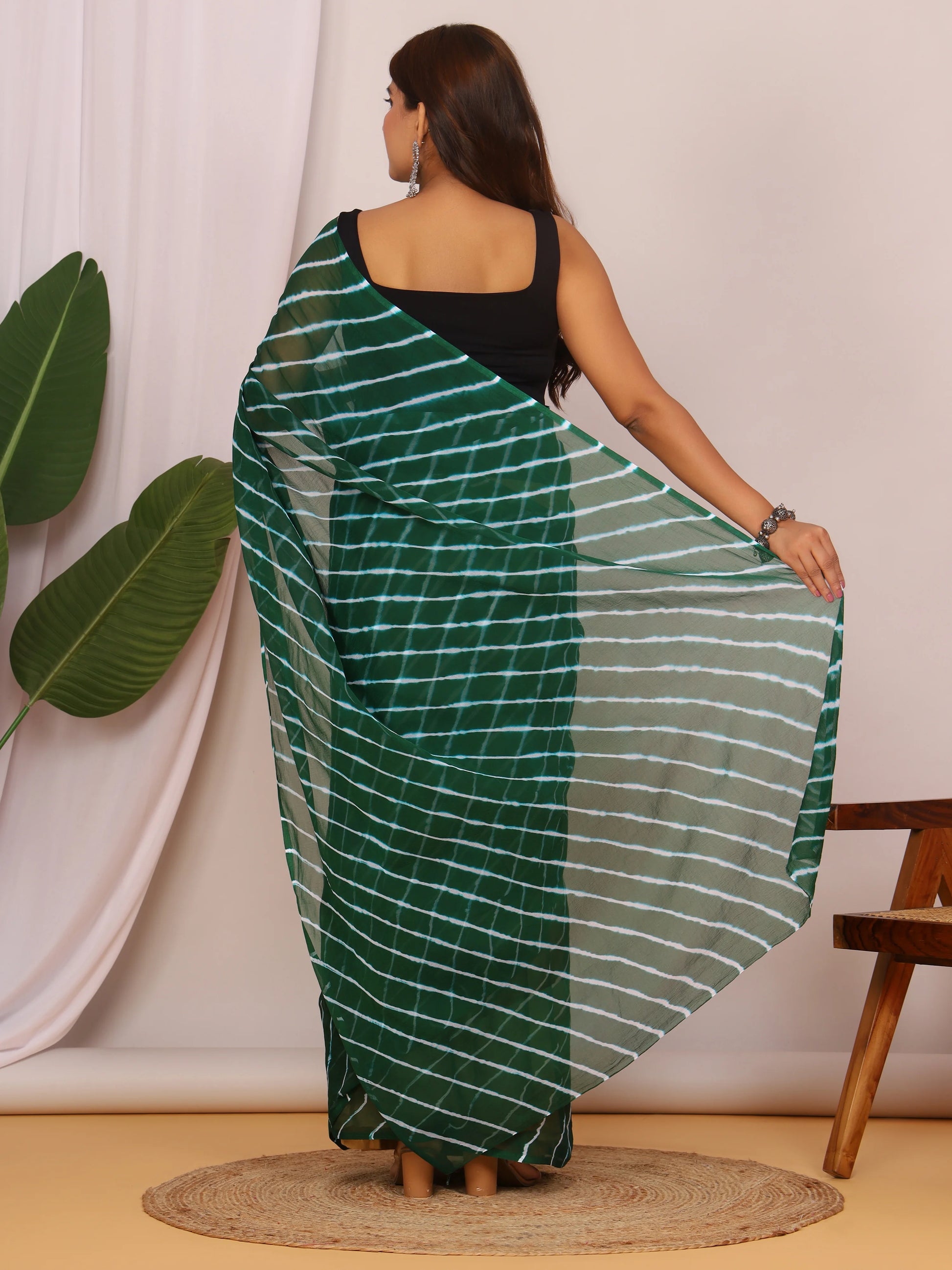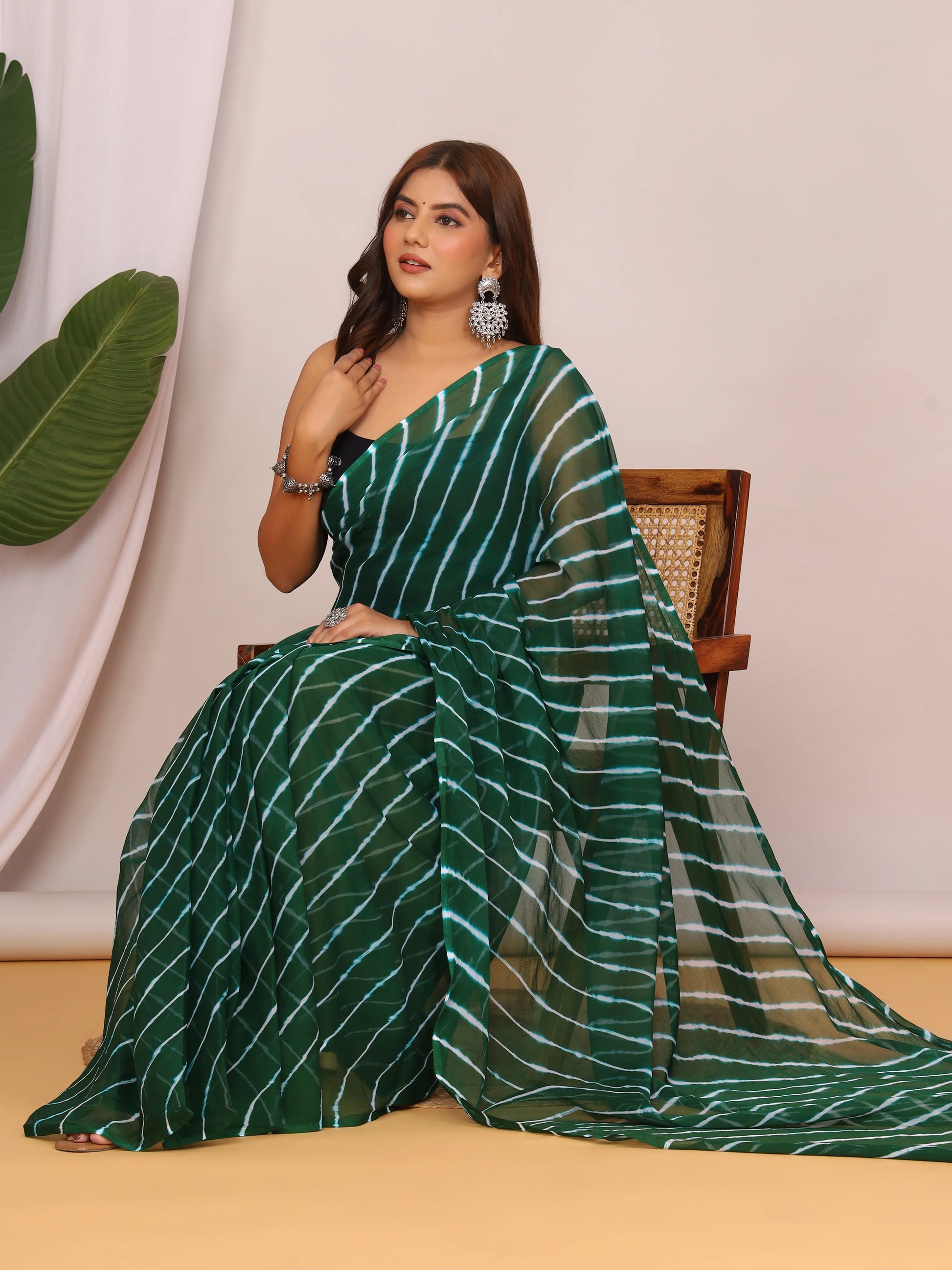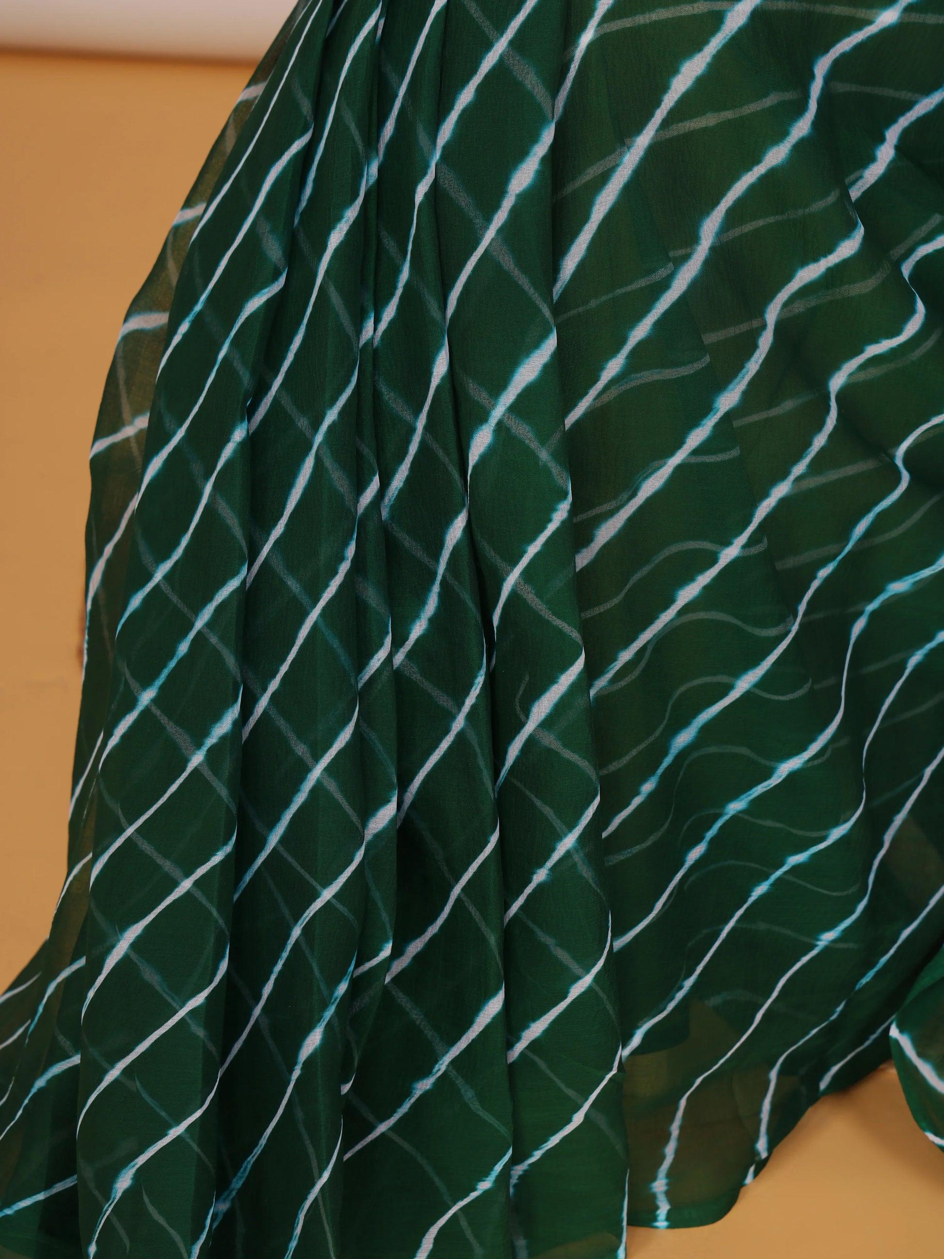 Bottle Green Nazmin Chiffon Saree with Hand Tied Lehriya