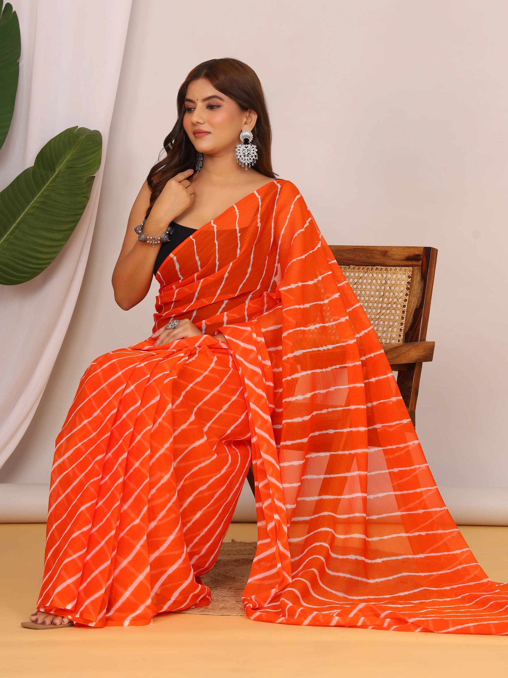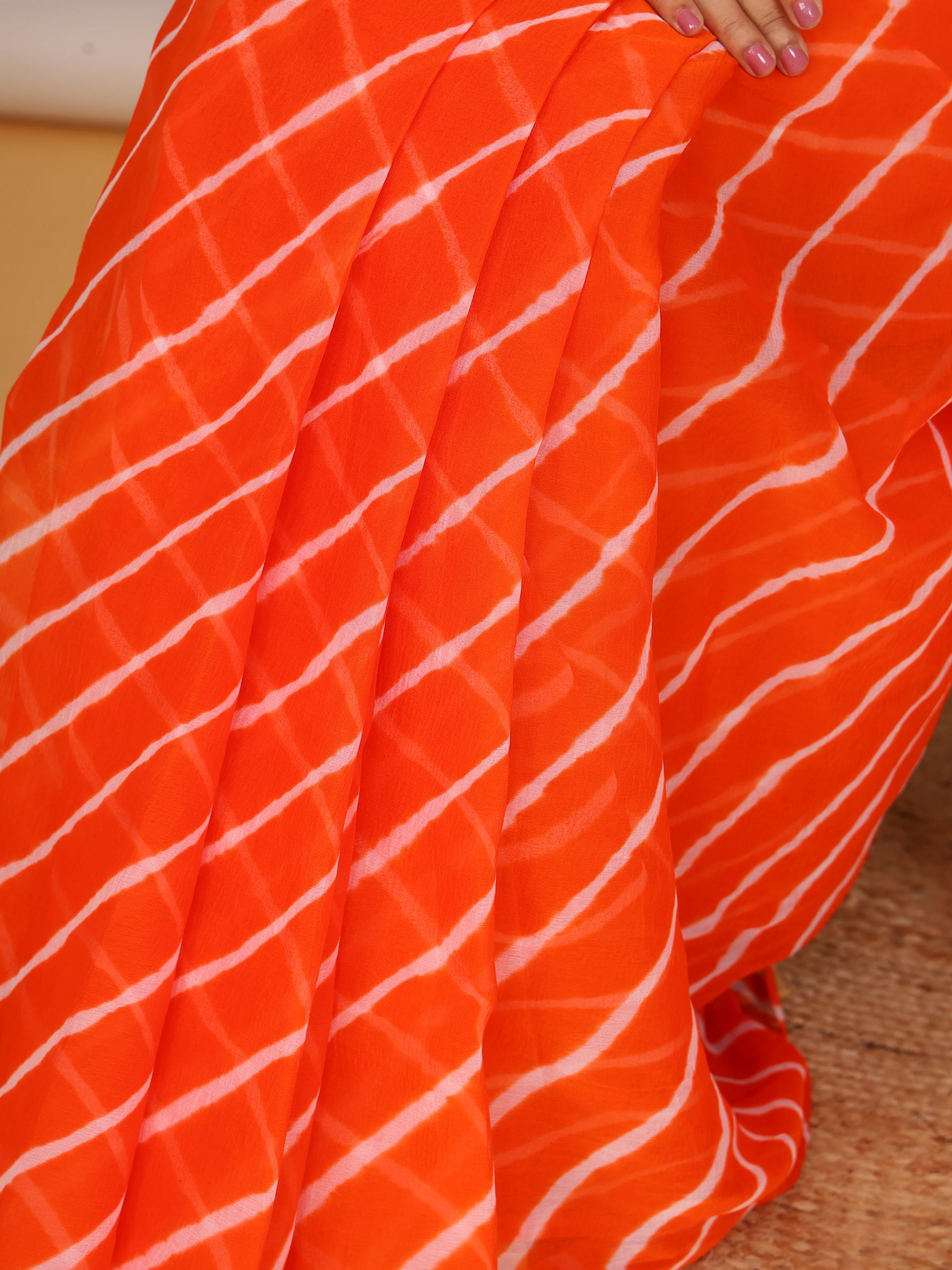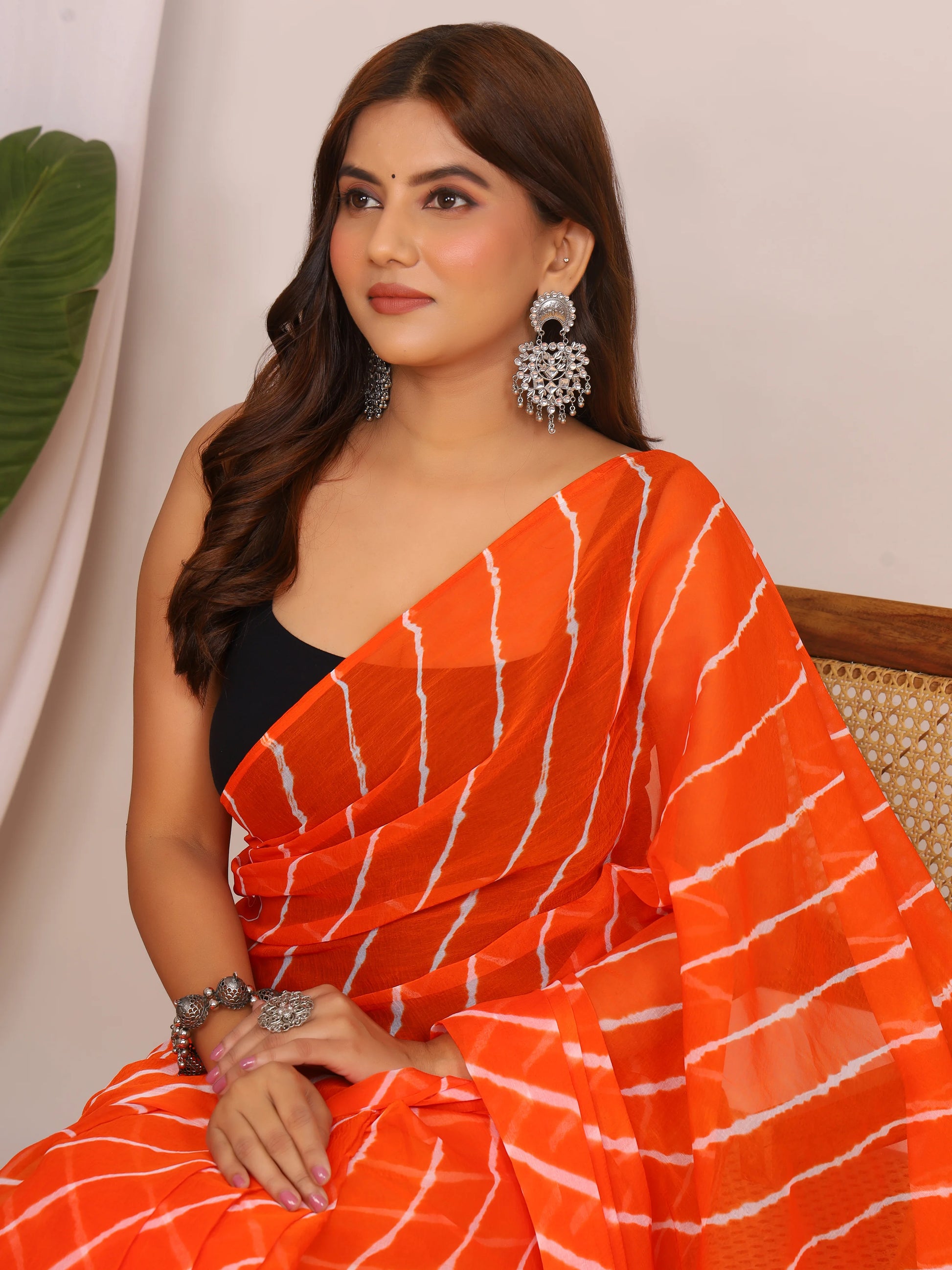 Bright Orange Nazmin Chiffon Saree with Hand Tied Lehriya
