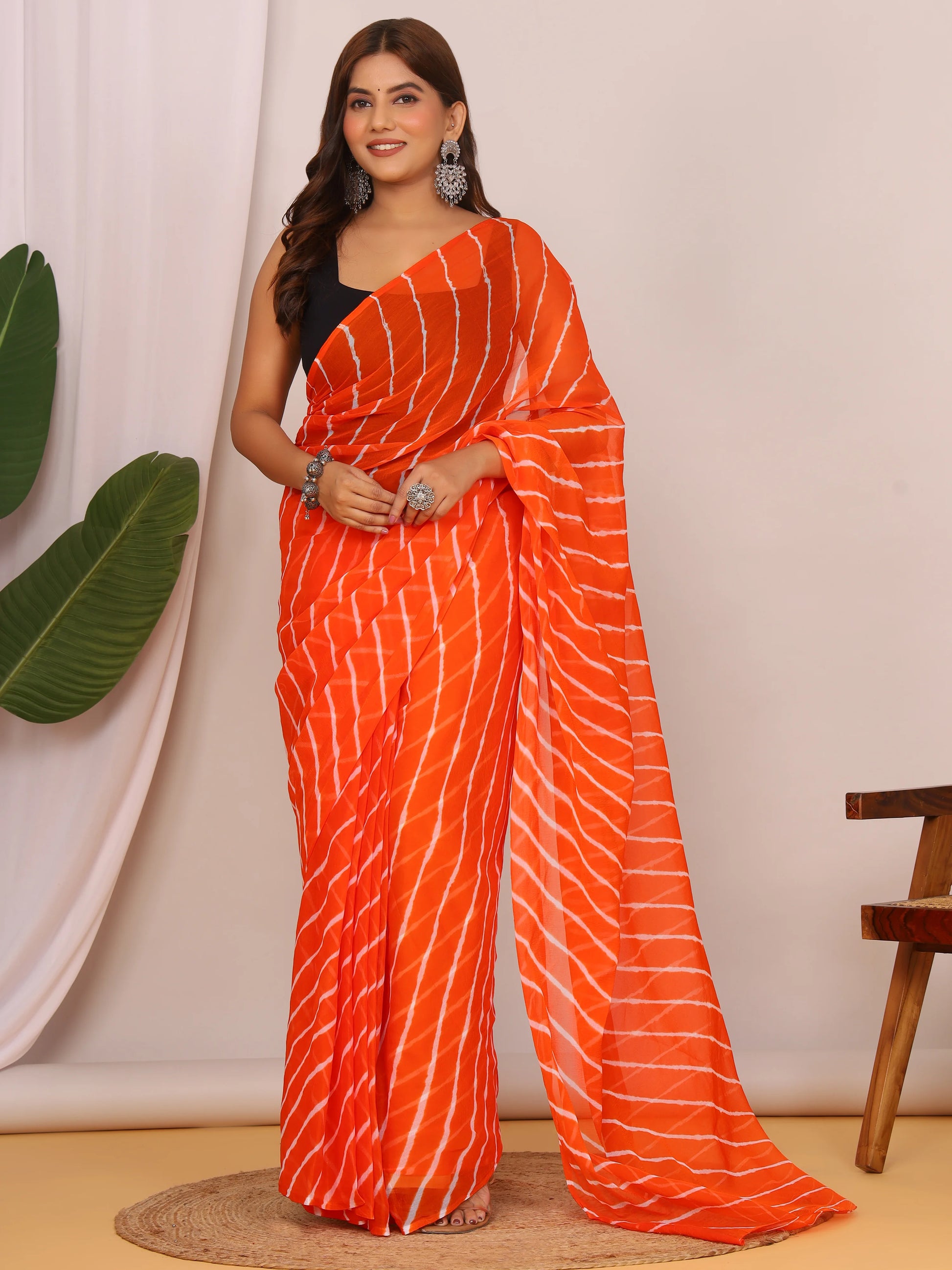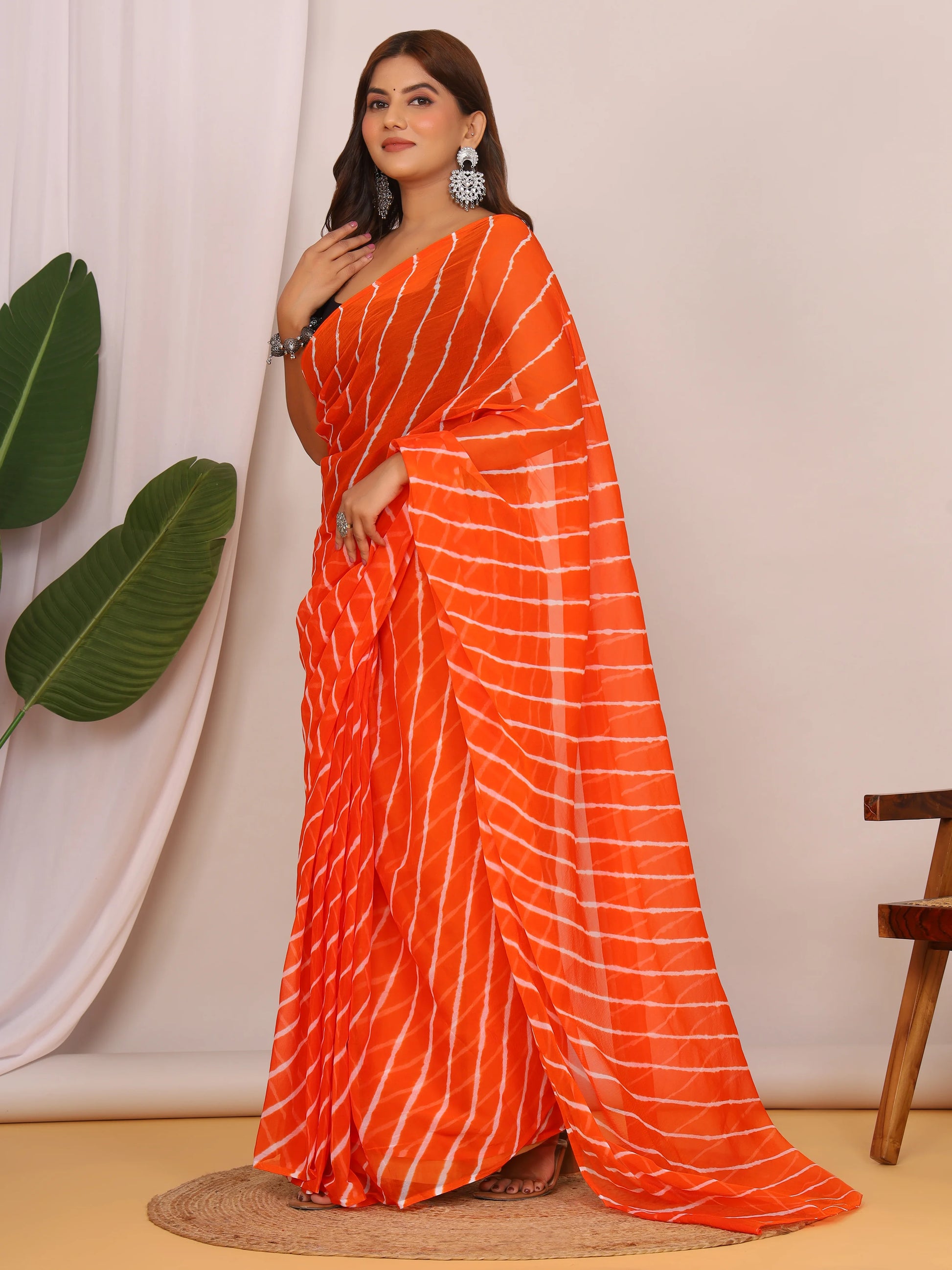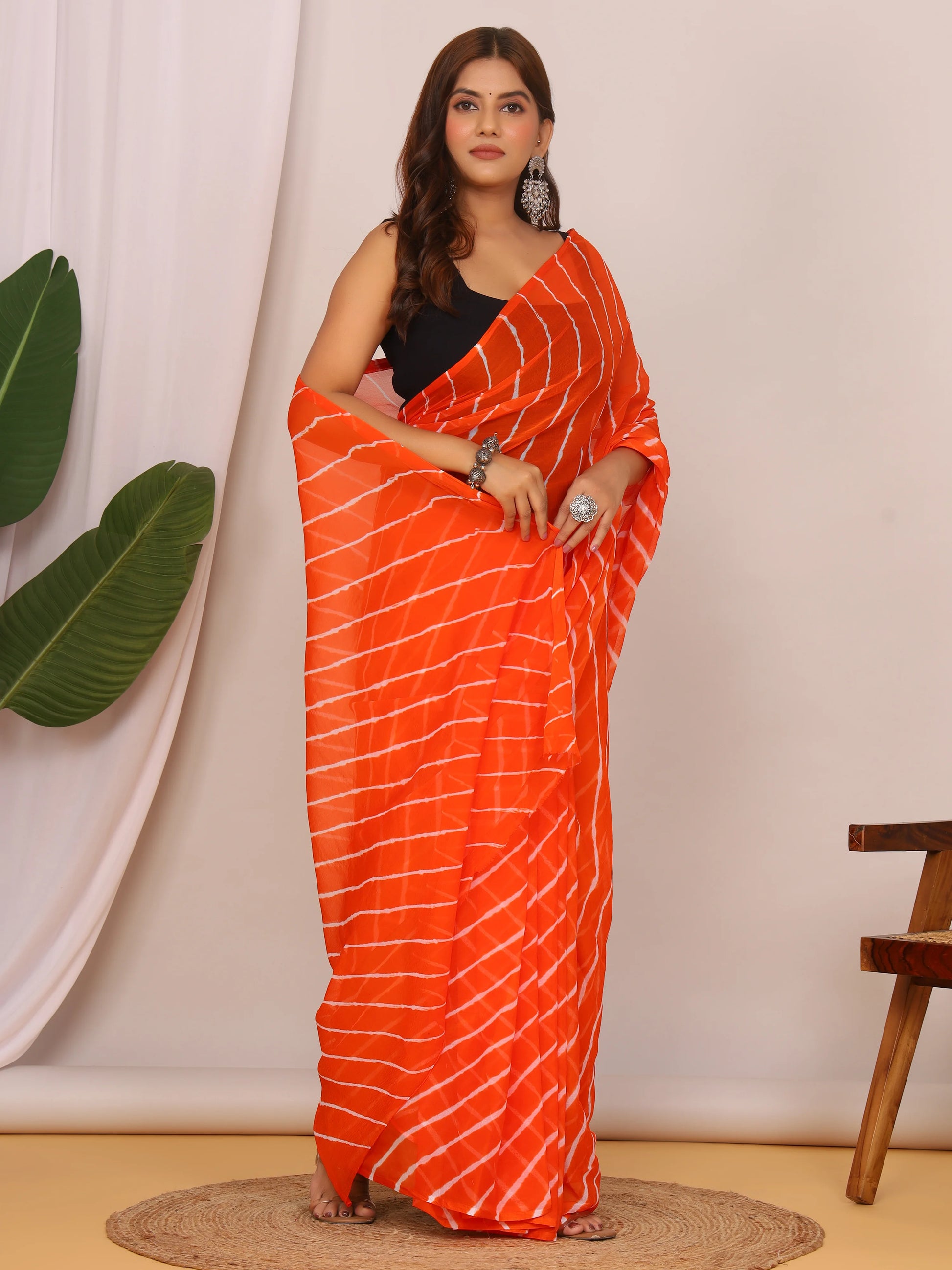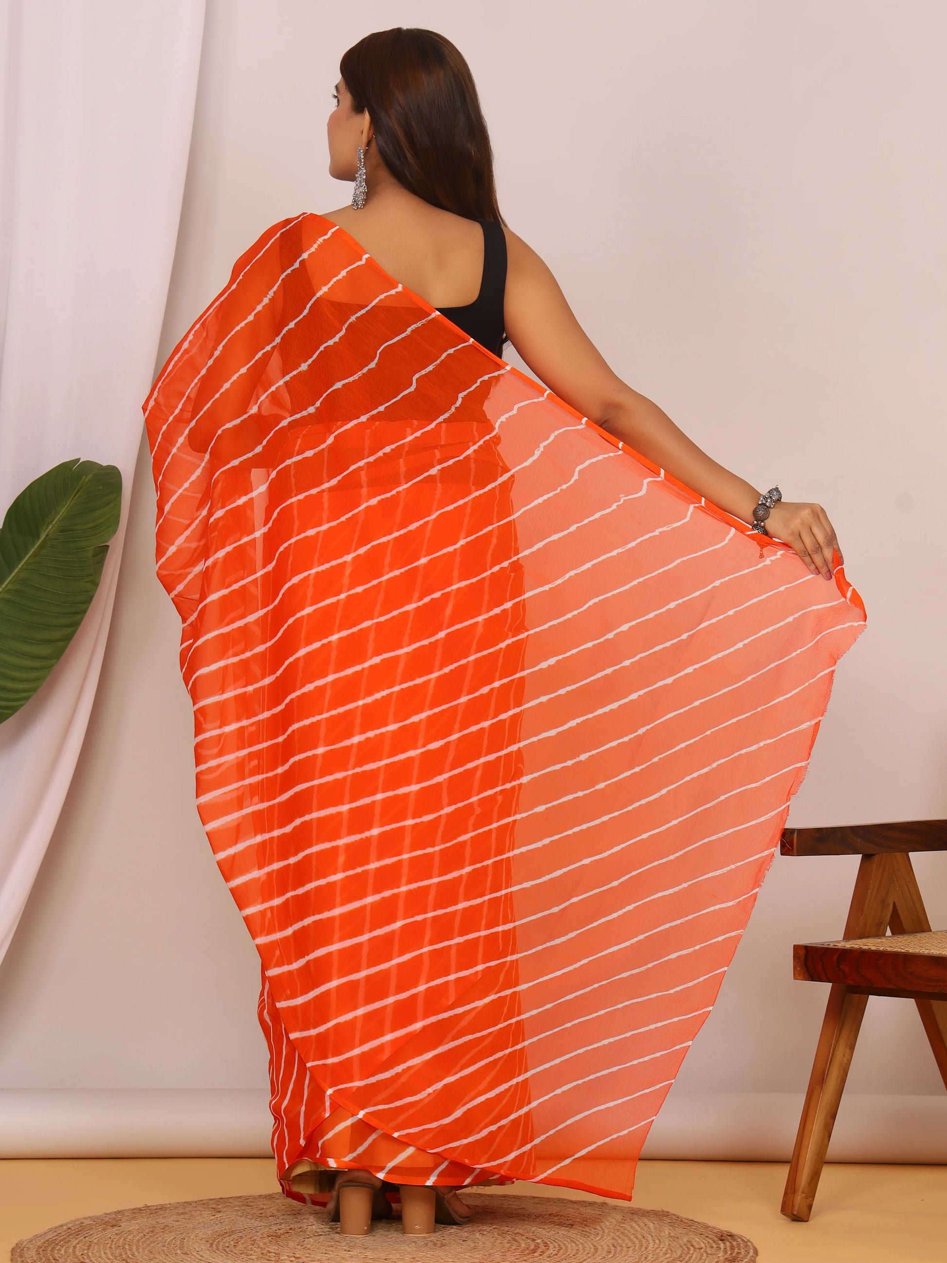 Bright Orange Nazmin Chiffon Saree with Hand Tied Lehriya