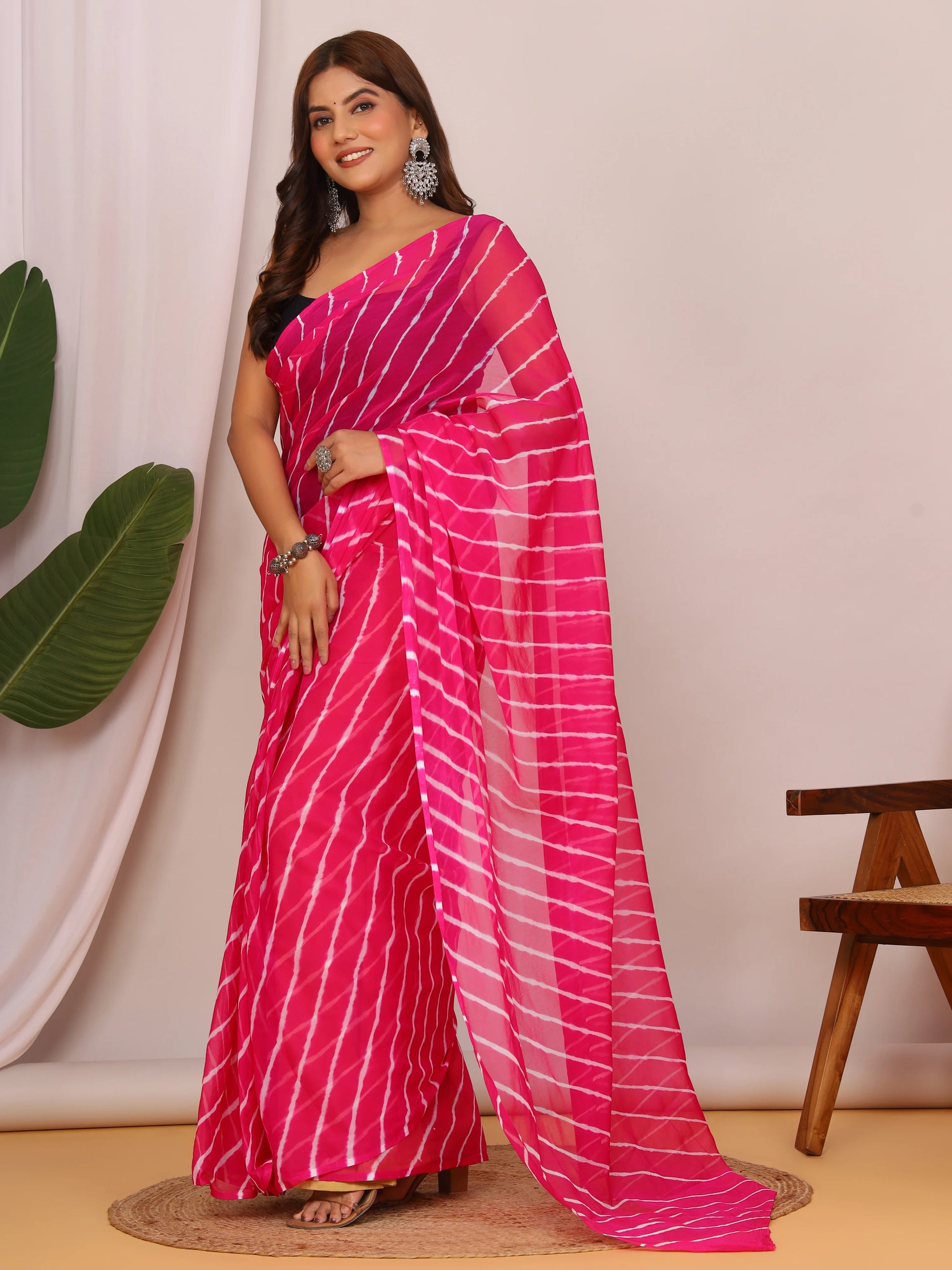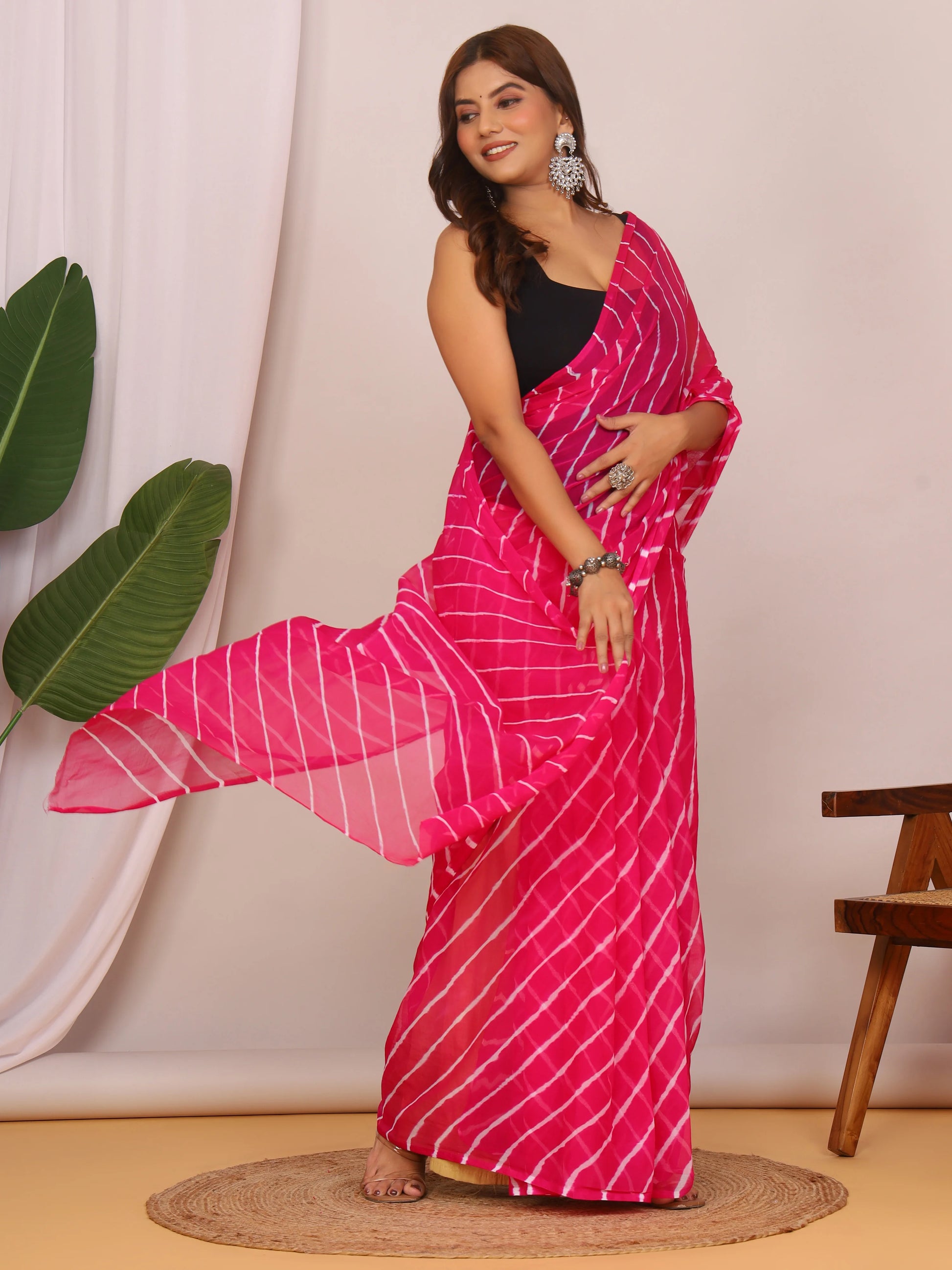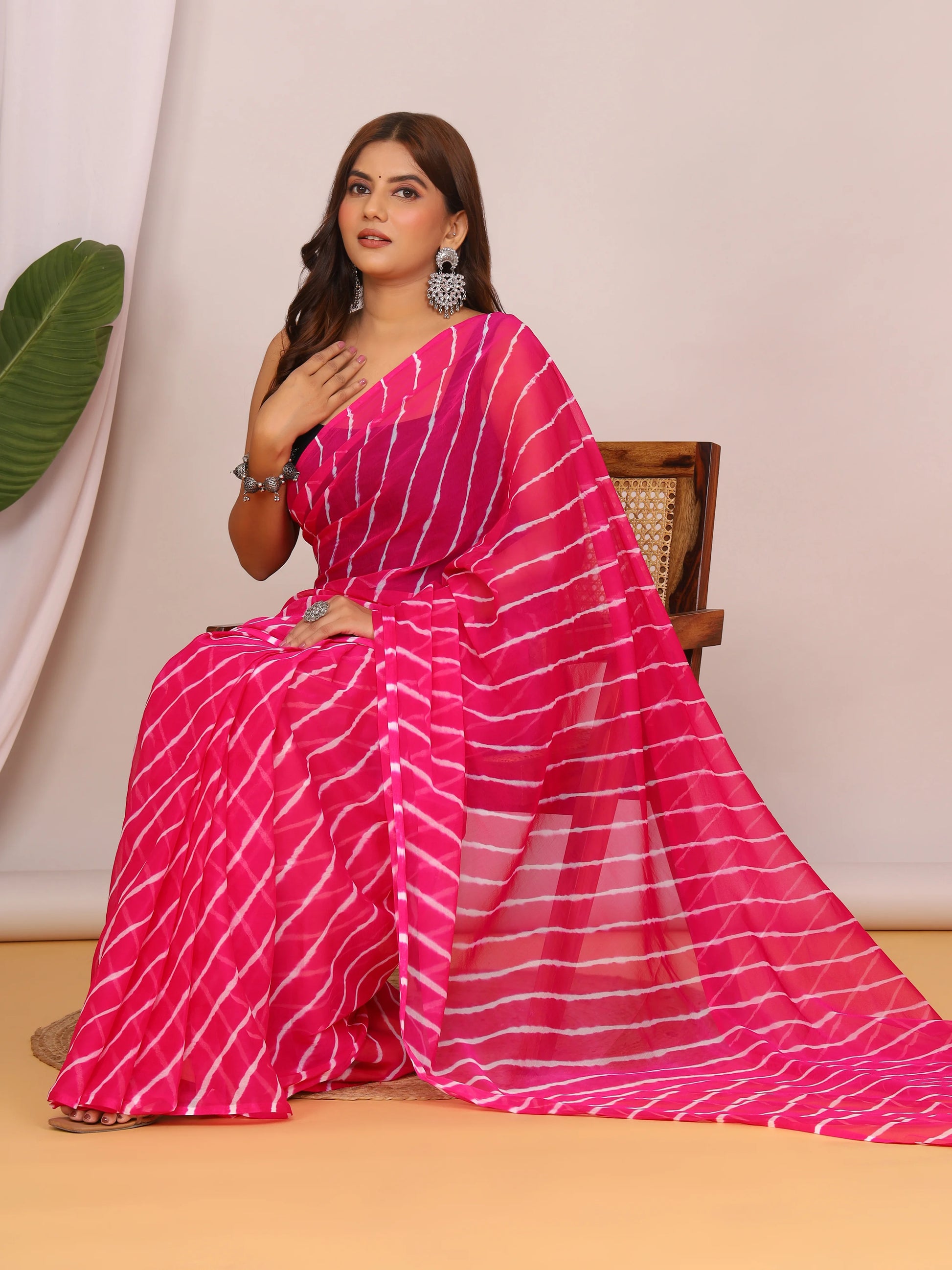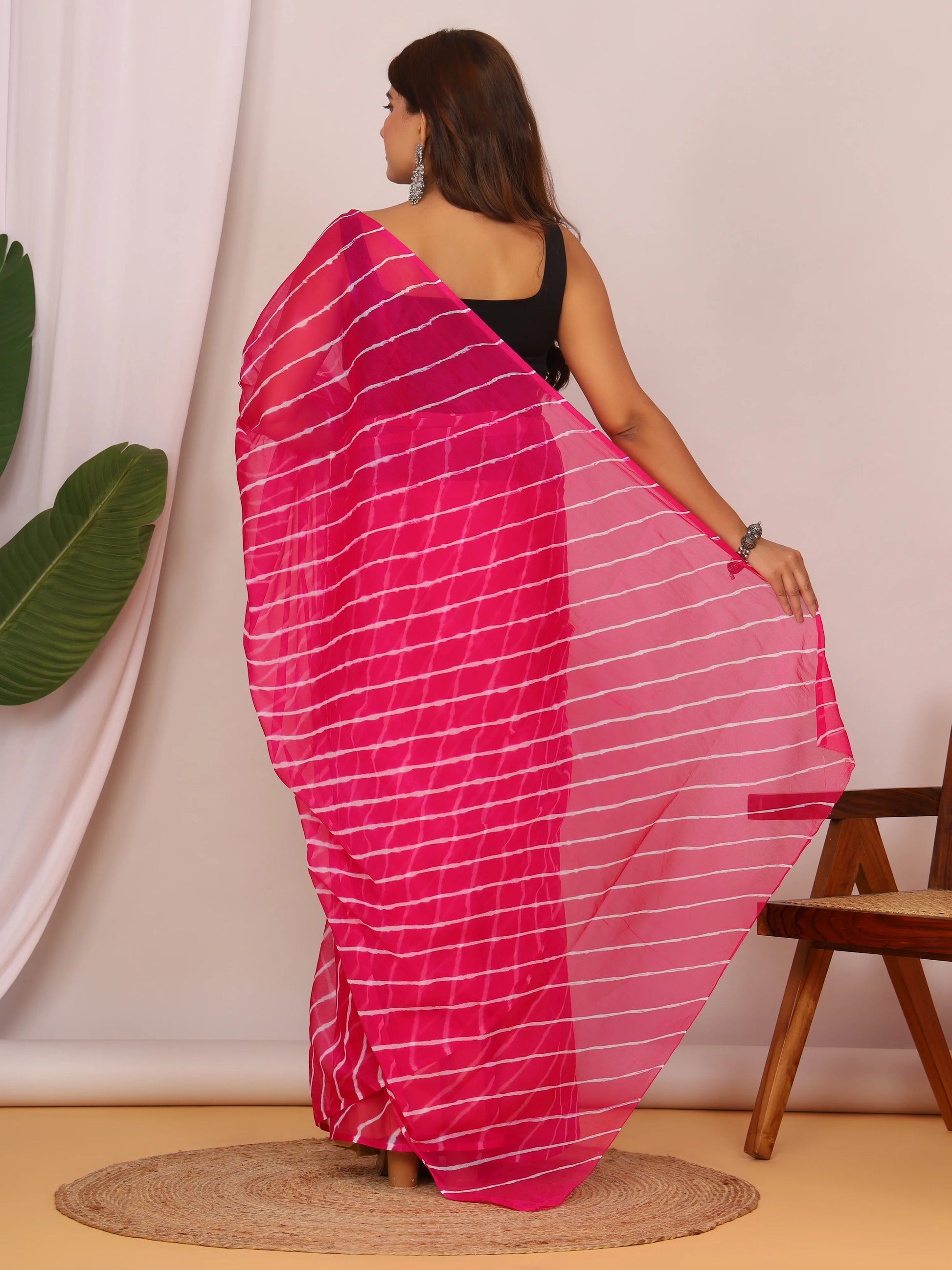 Dark Pink Nazmin Chiffon Saree with Hand Tied Lehriya