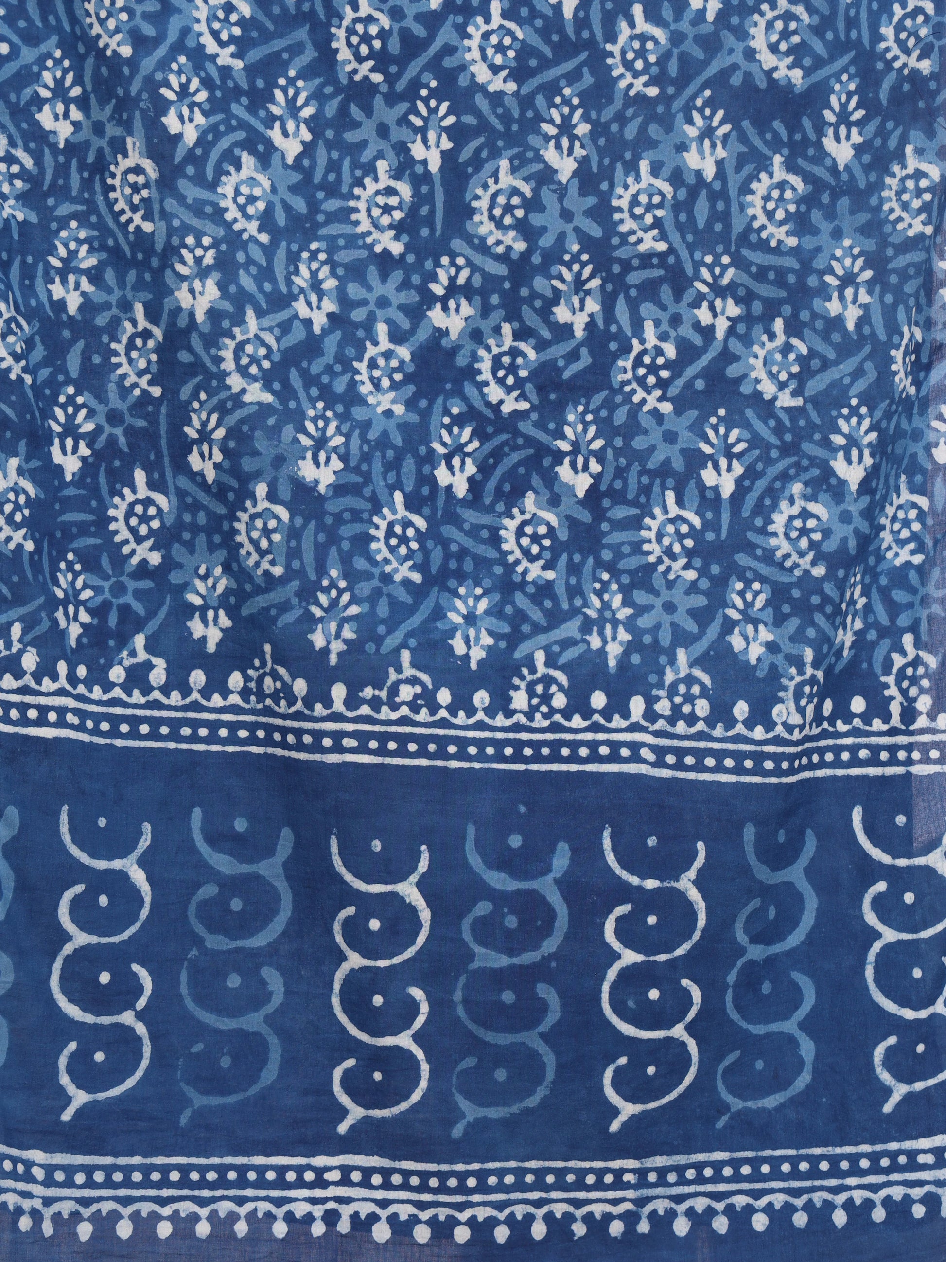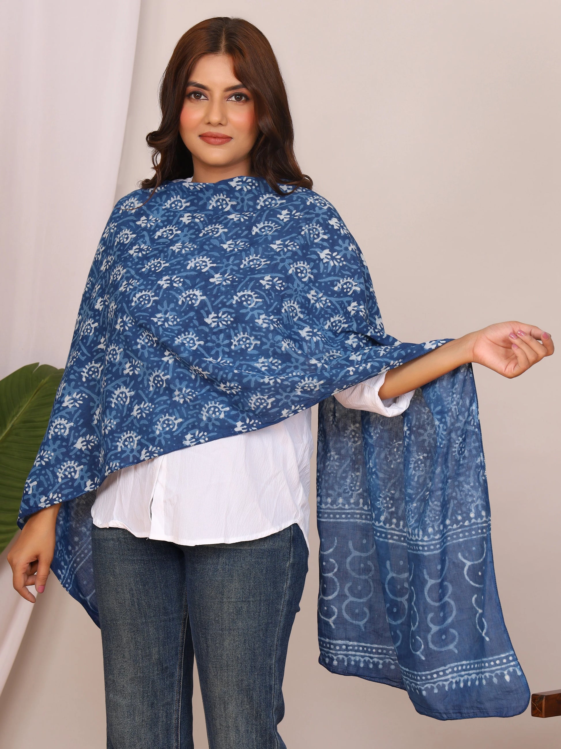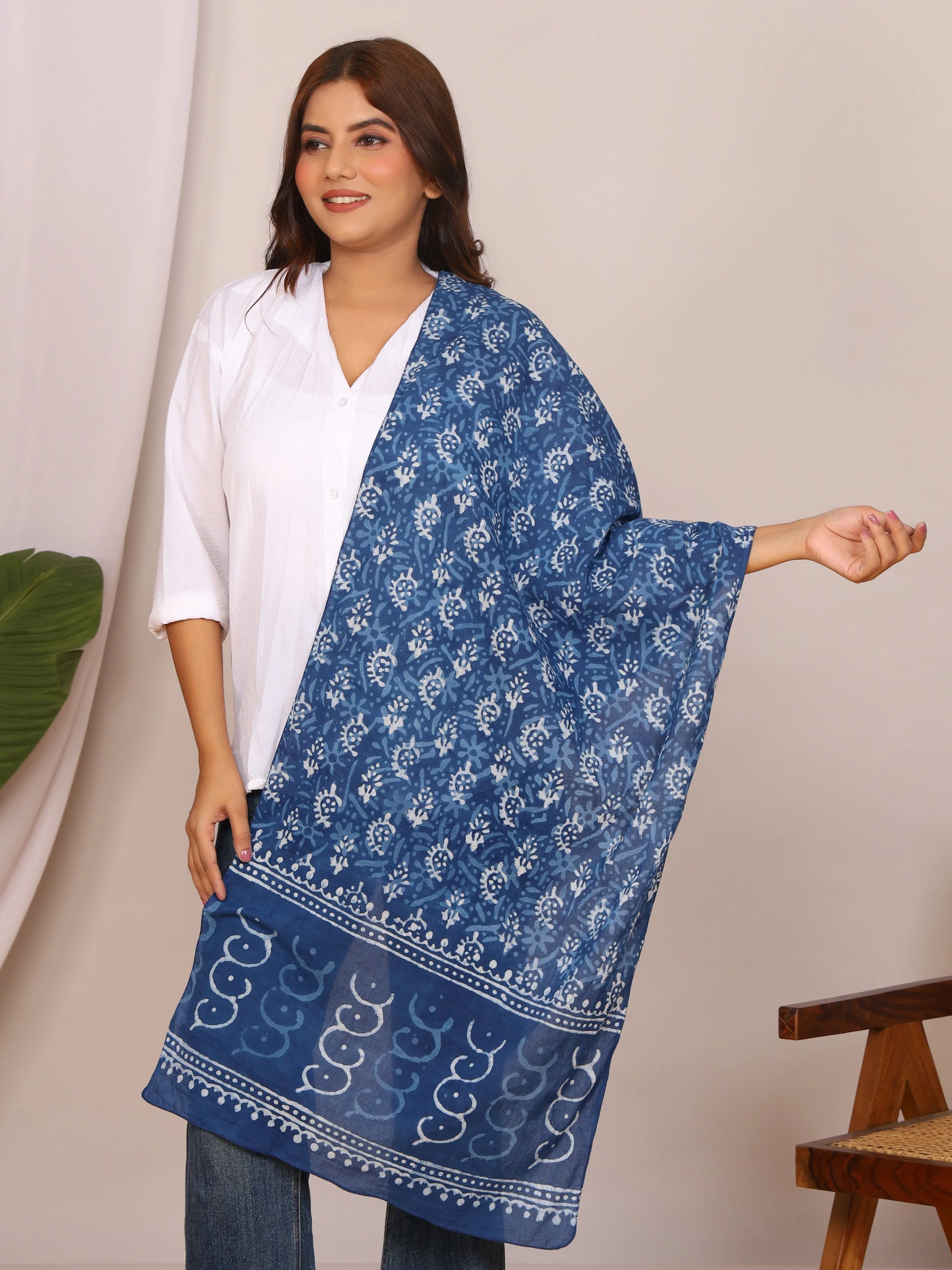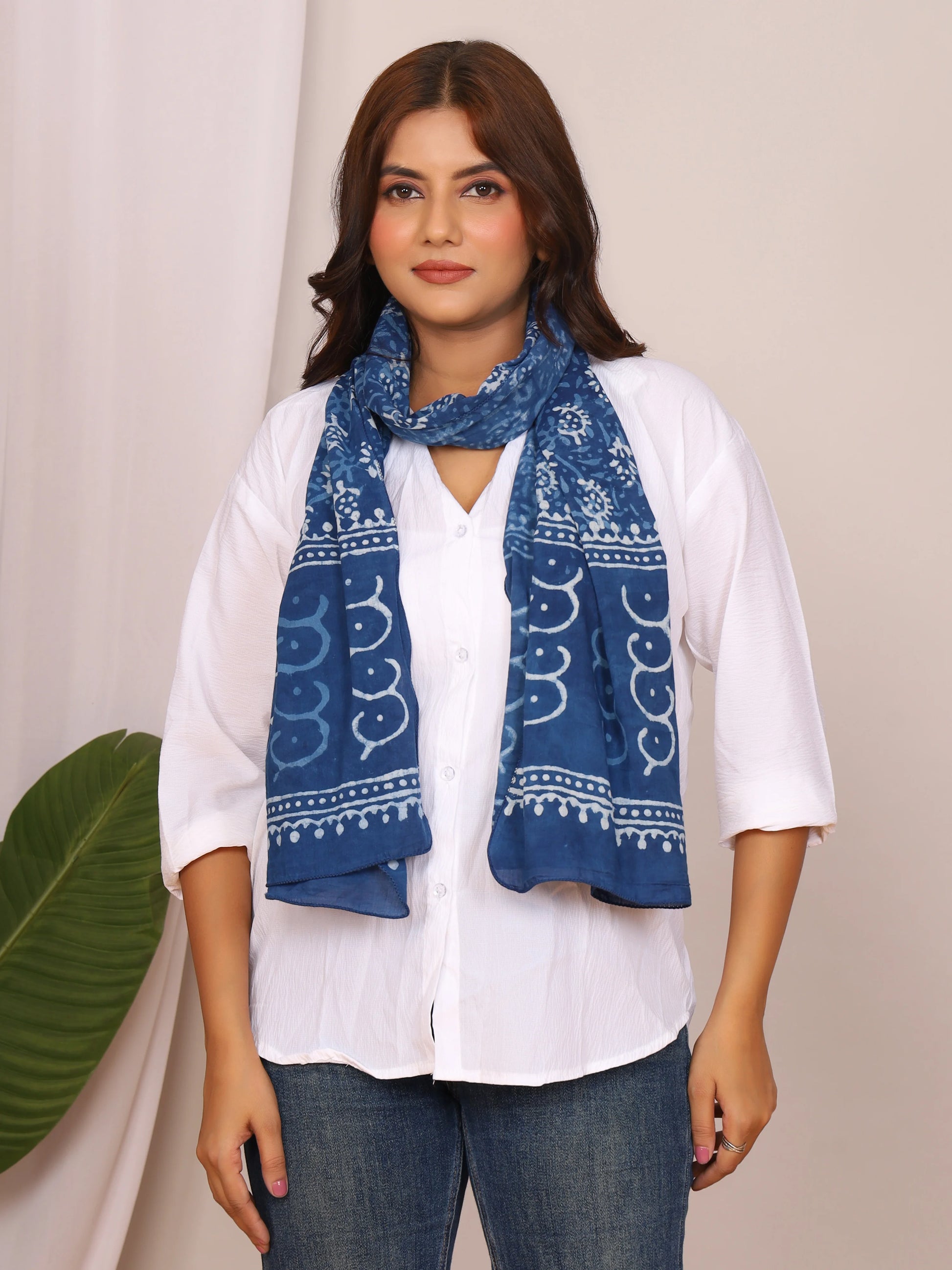 Indigo Pure Cotton Handblock Dabu Print Stole with Abstract Wave Motifs