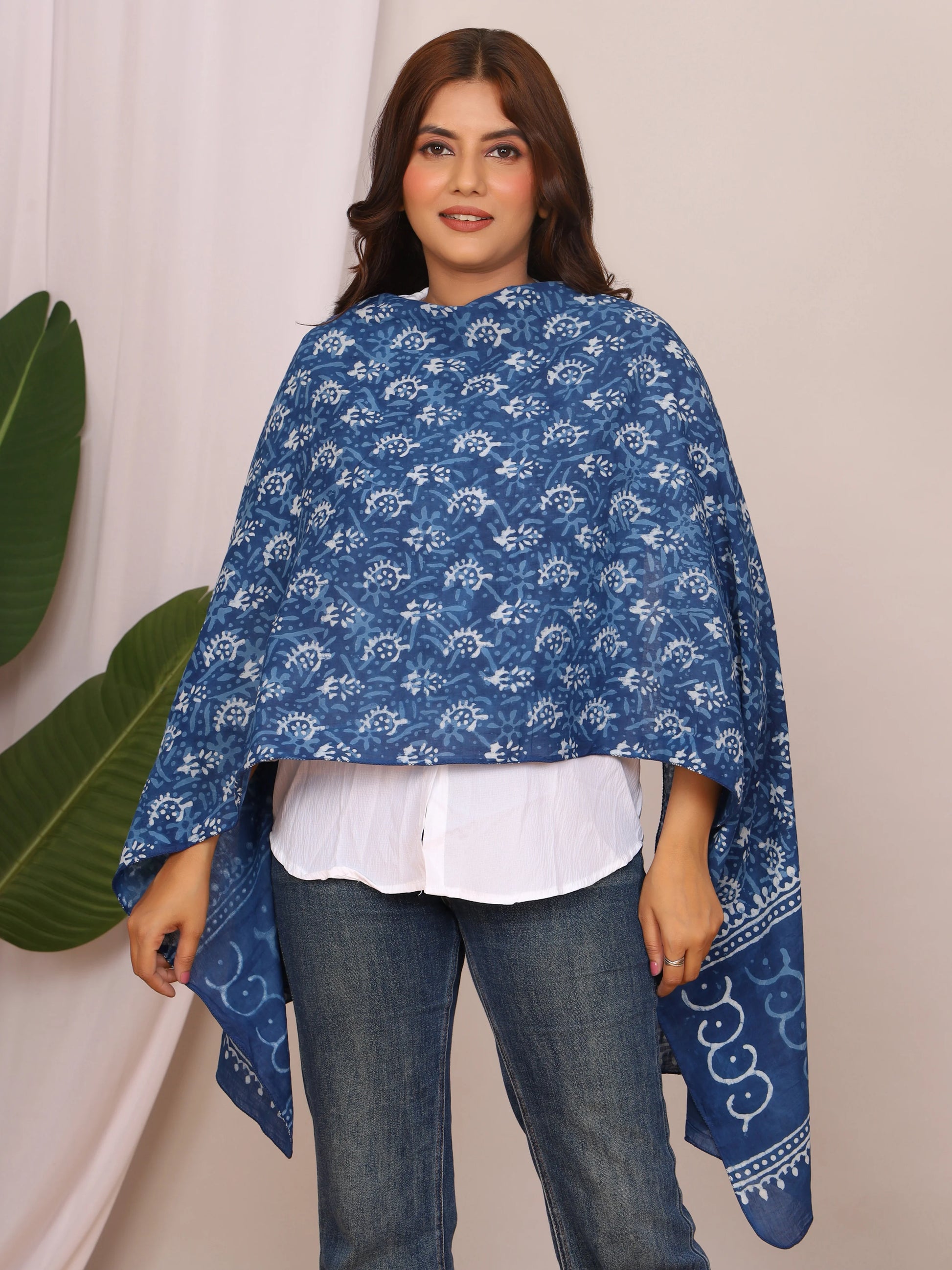 Infuse your style with ethnic flair through this indigo pure cotton stole adorned with bold abstract handblock Dabu prints in soft white