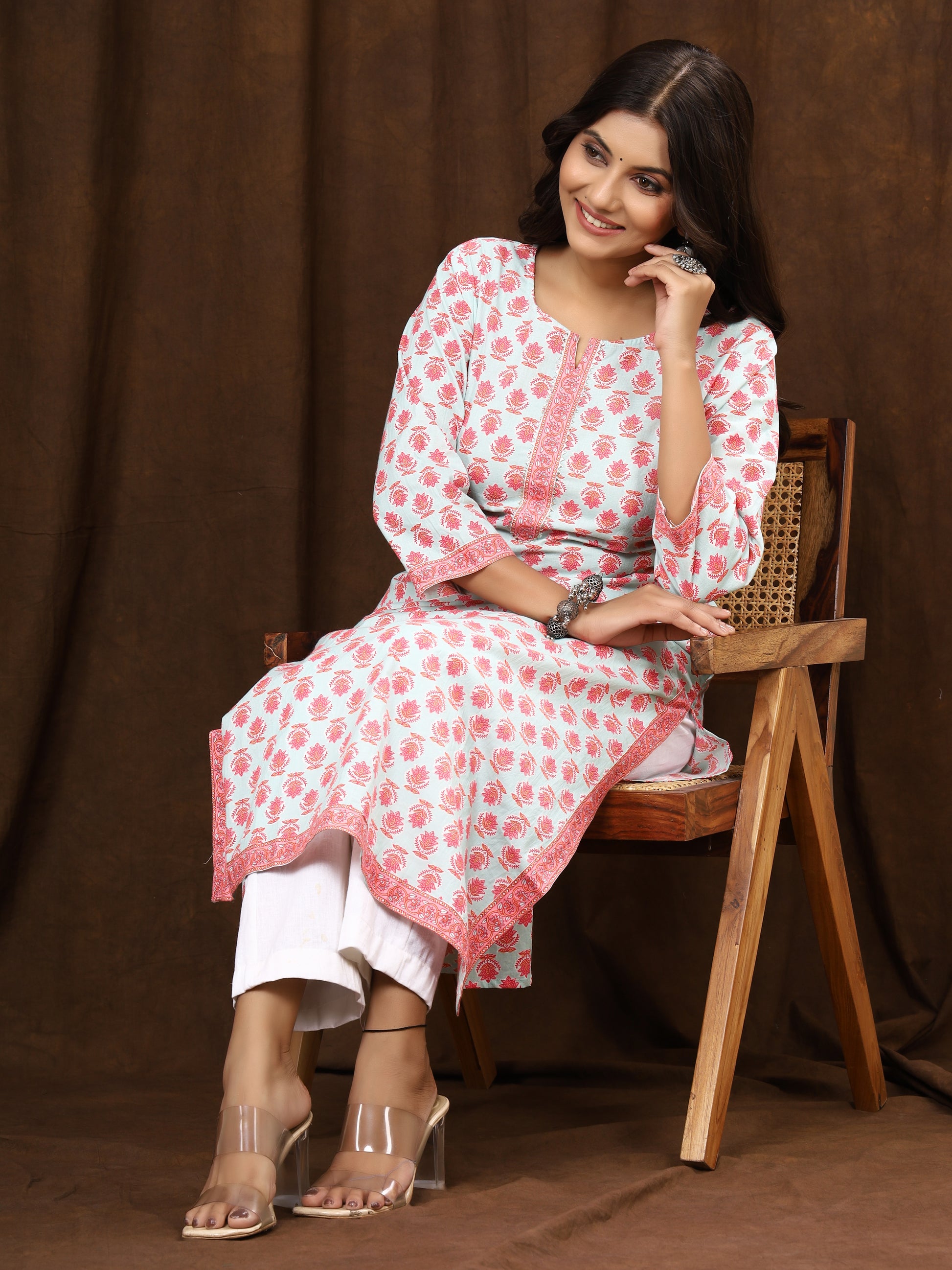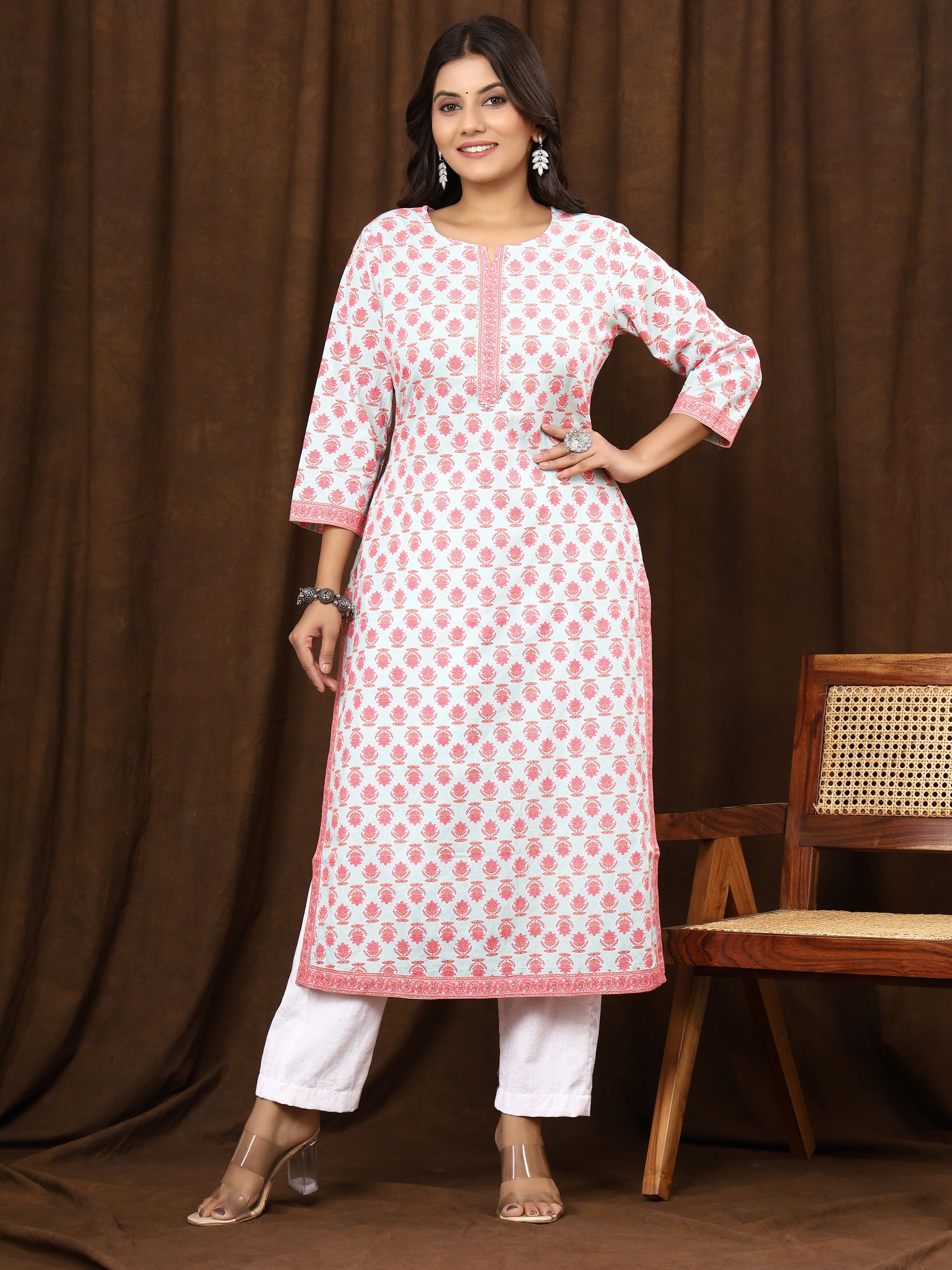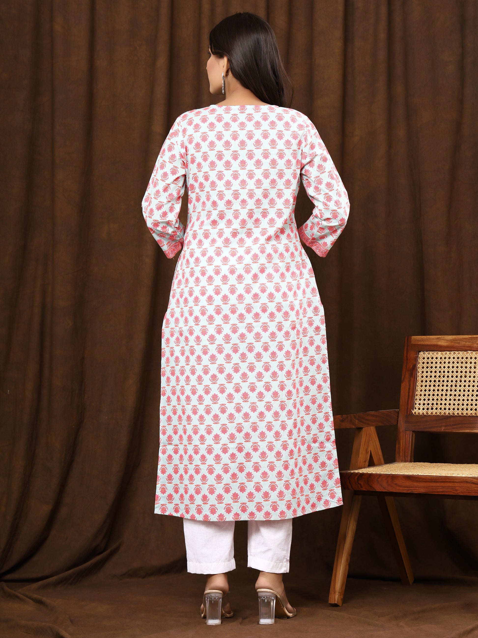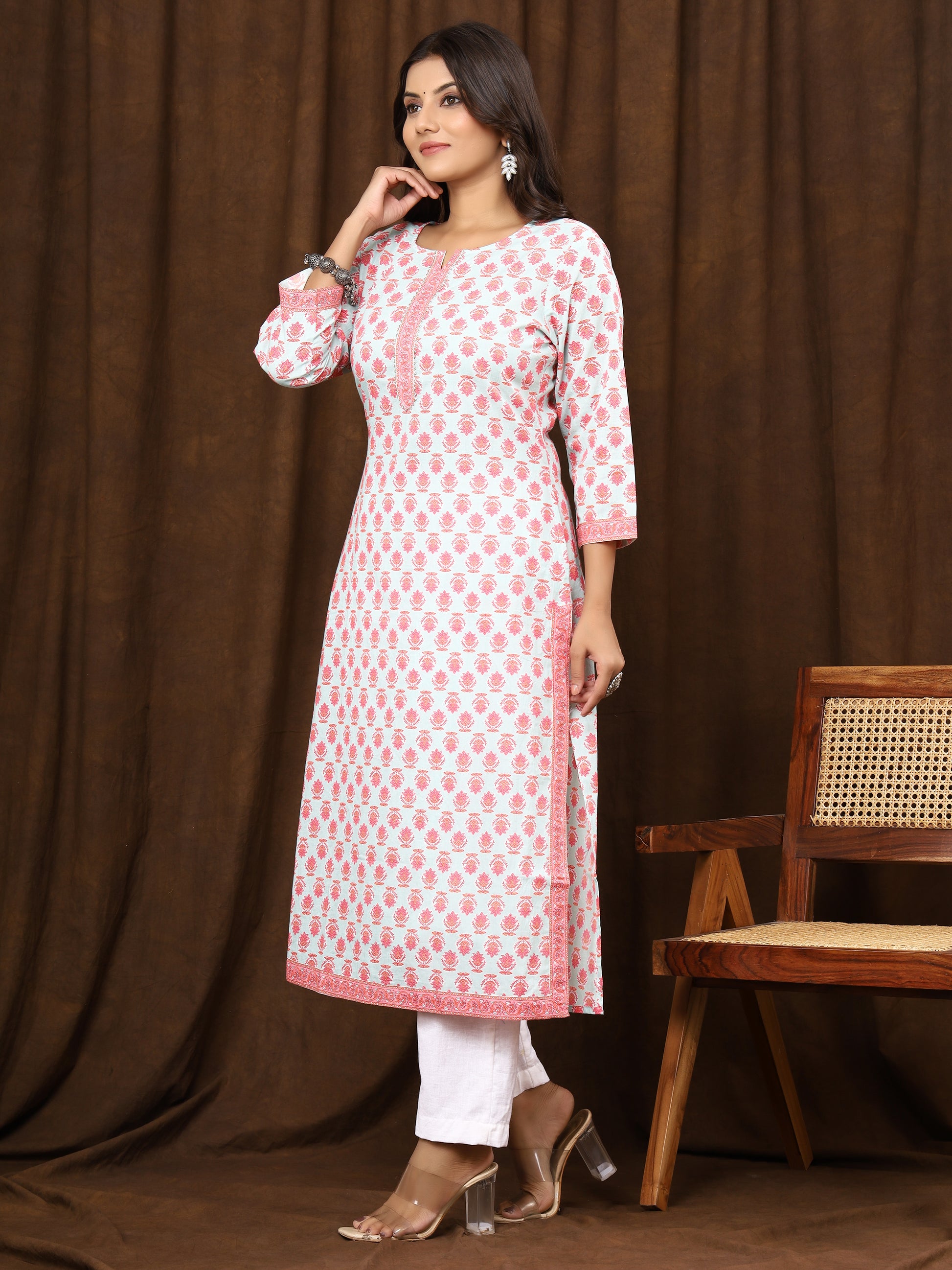 Sanganeri Buti Print Light Blue Cotton Kurti